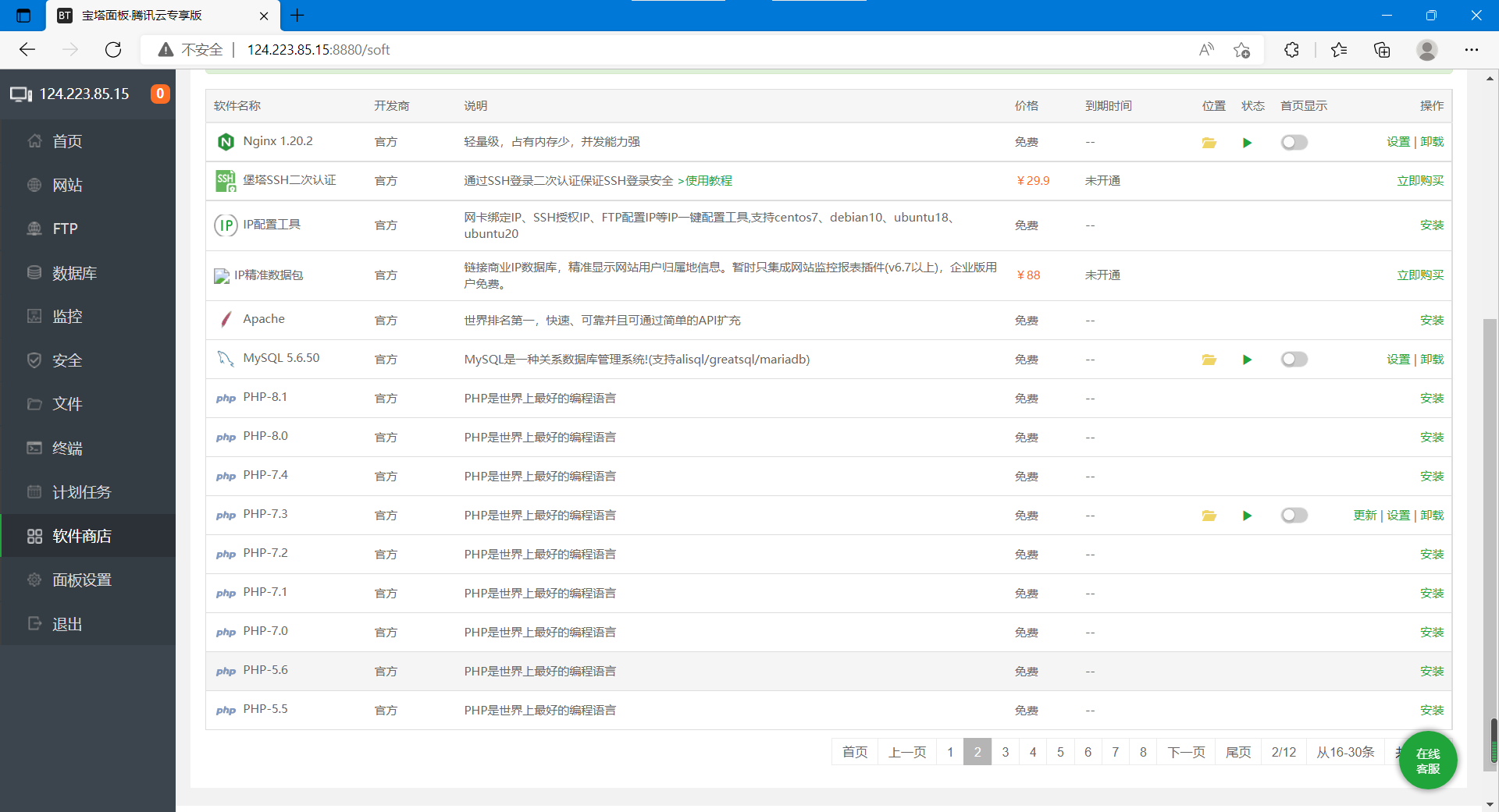 此处使用宝塔面板进行演示,且已跳过宝塔面板安装过程,如有需要,请自行访问宝塔官网。