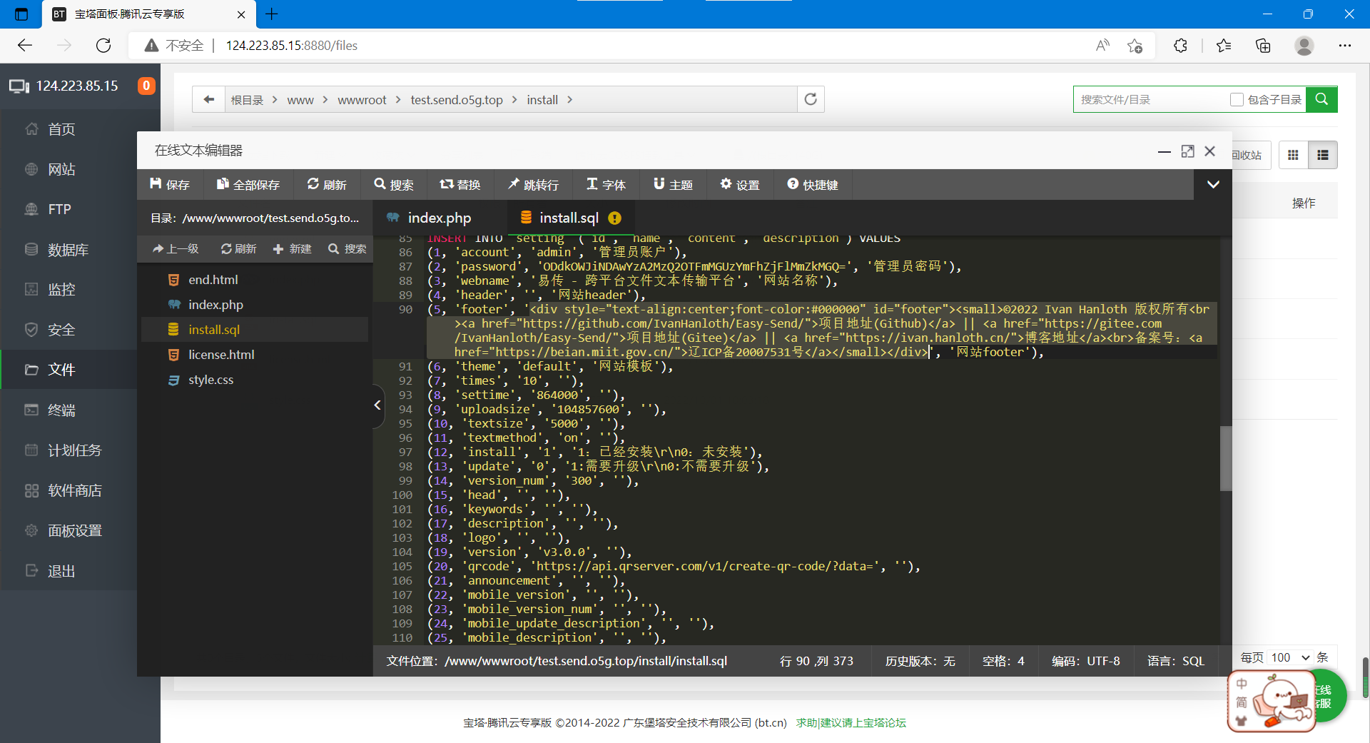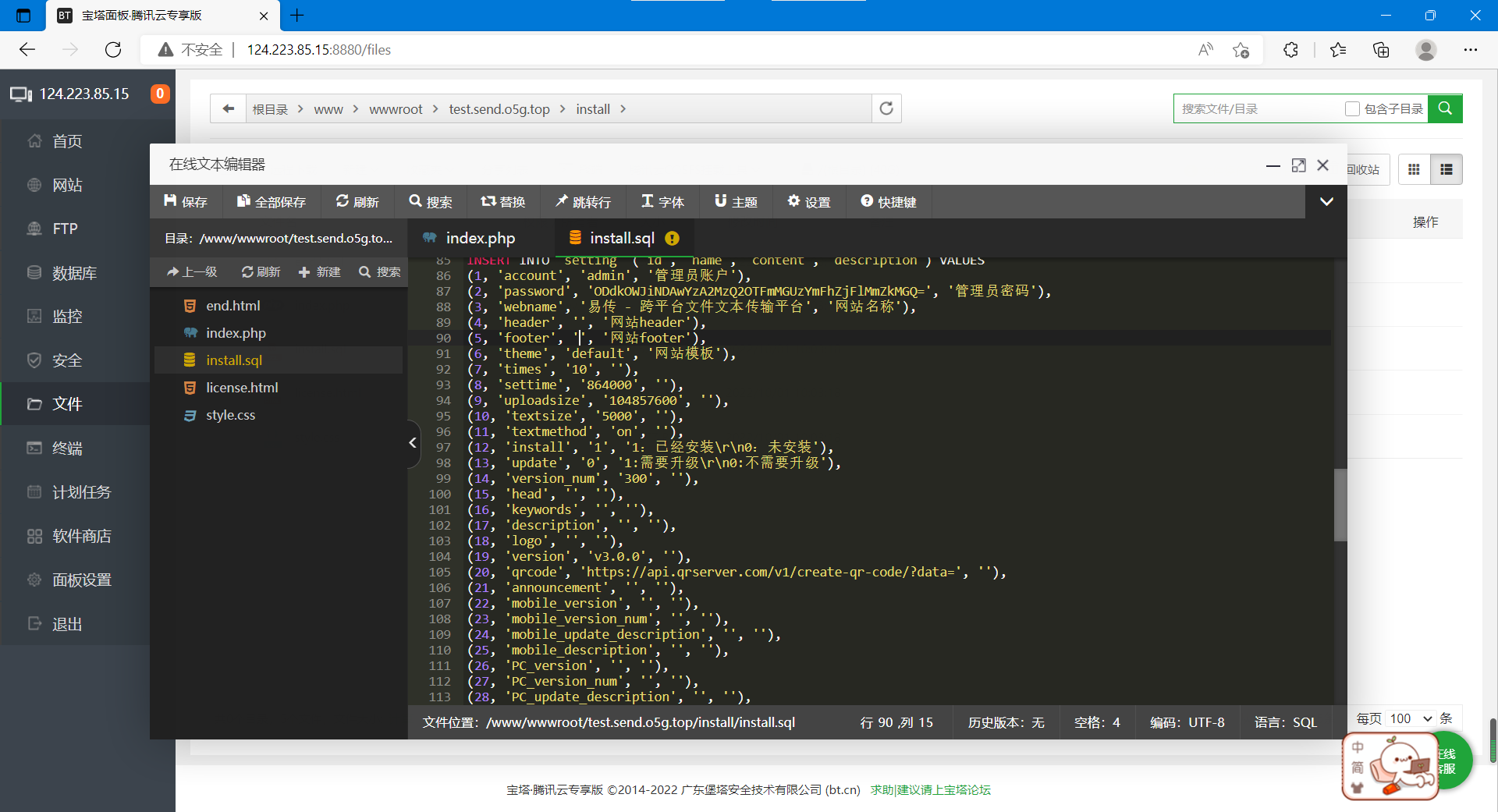 查看install/install.sql,查看第90行(可能有误差,具体见图)