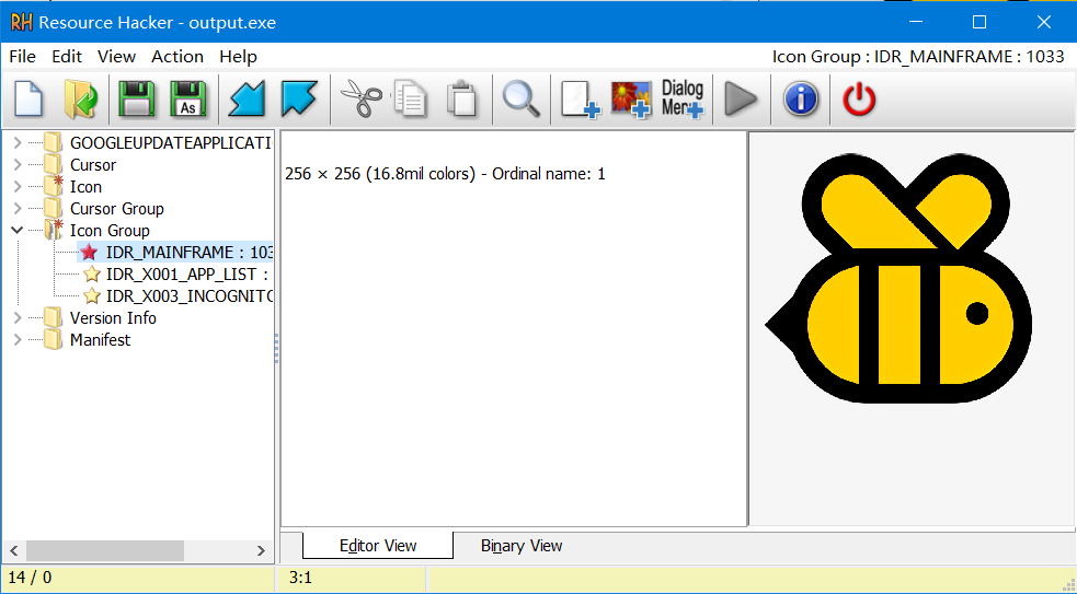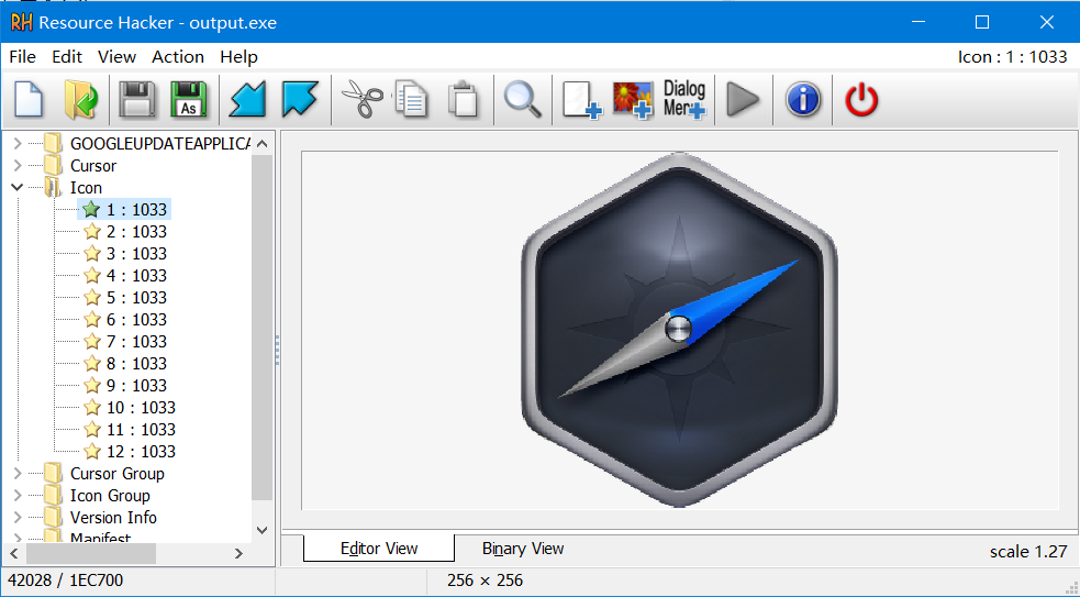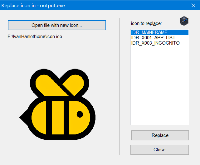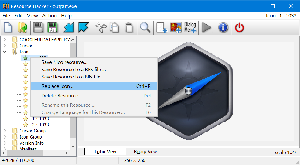右键点击“Icon”->“1 : 1033”并选择“Replace Icon”