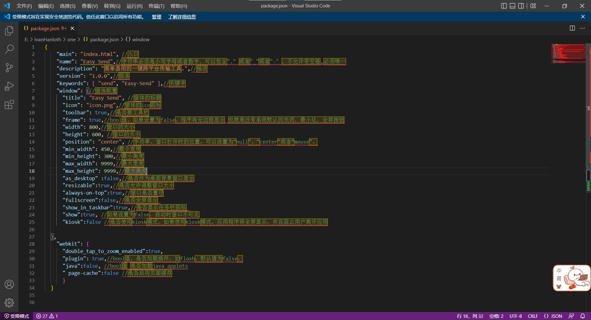 修改源码根目录下的package.json文件,按照需求和注释进行修改(没有特殊需求按照下载时配置好的保存就行)