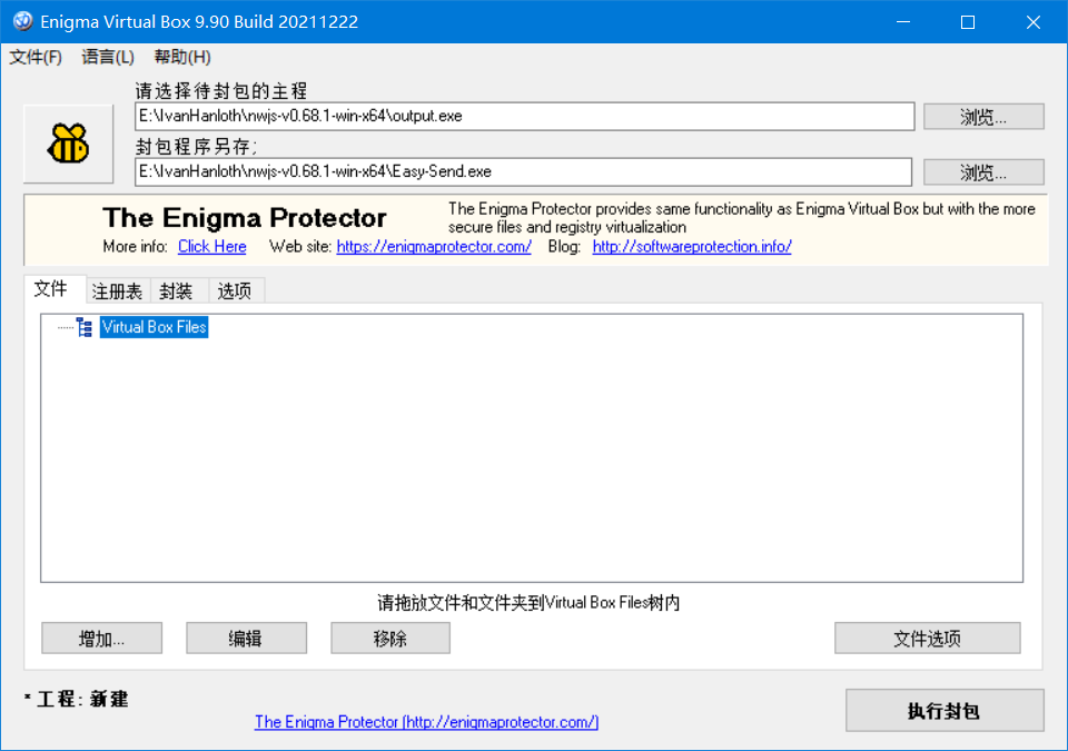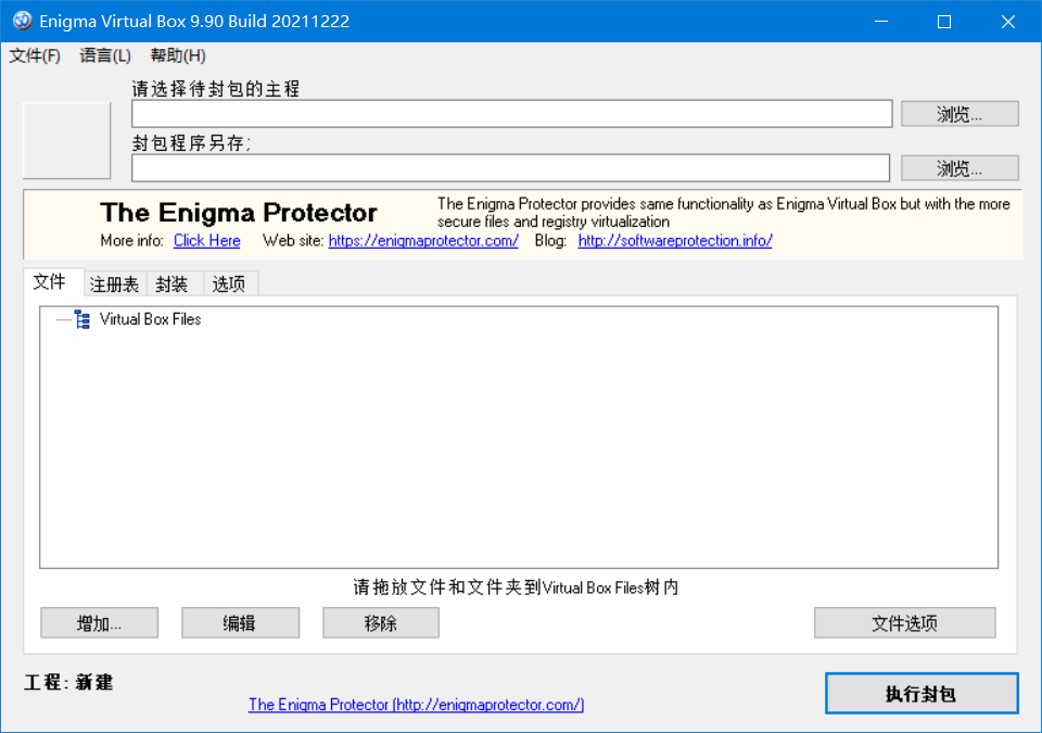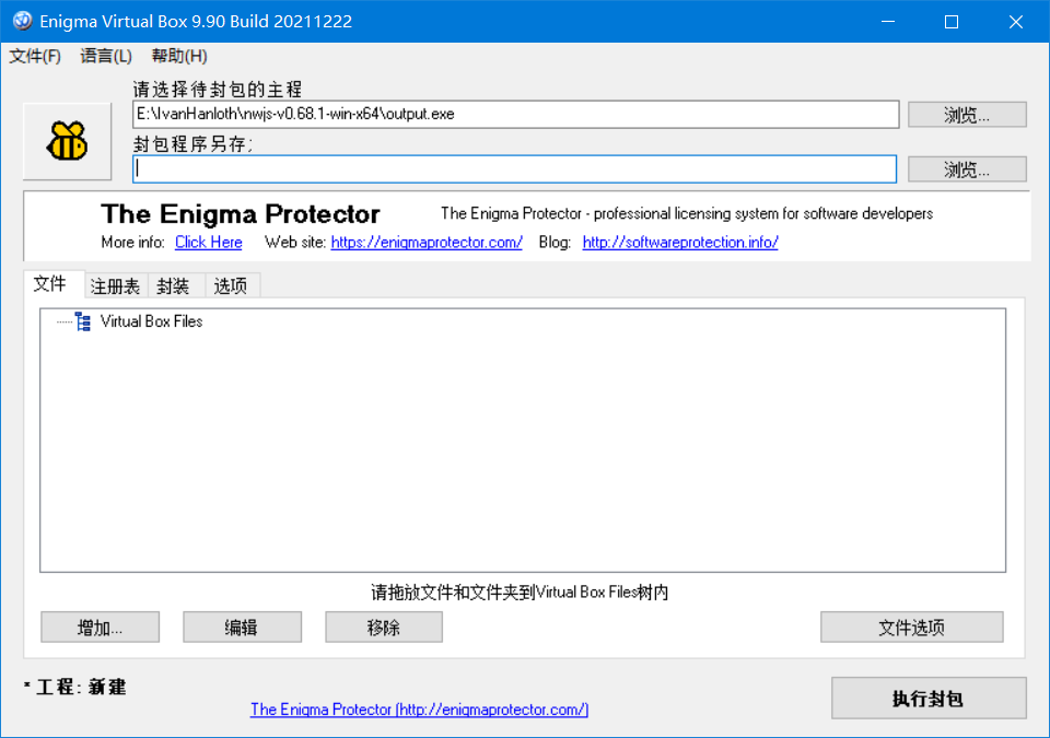 访问https://enigmaprotector.com/en/downloads.html 下载Enigma Virtual Box并安装运行