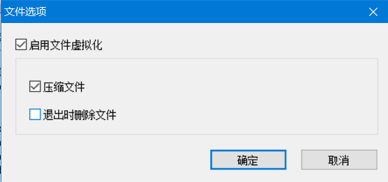 点击“文件选项”,选中“启用文件虚拟化”、“压缩文件”并点击“确定”