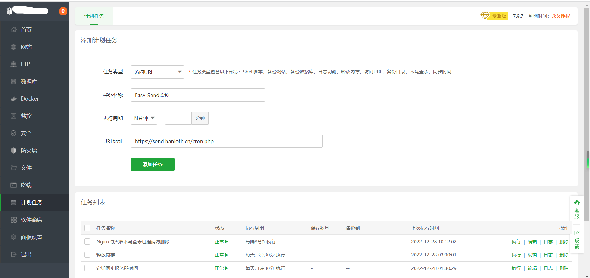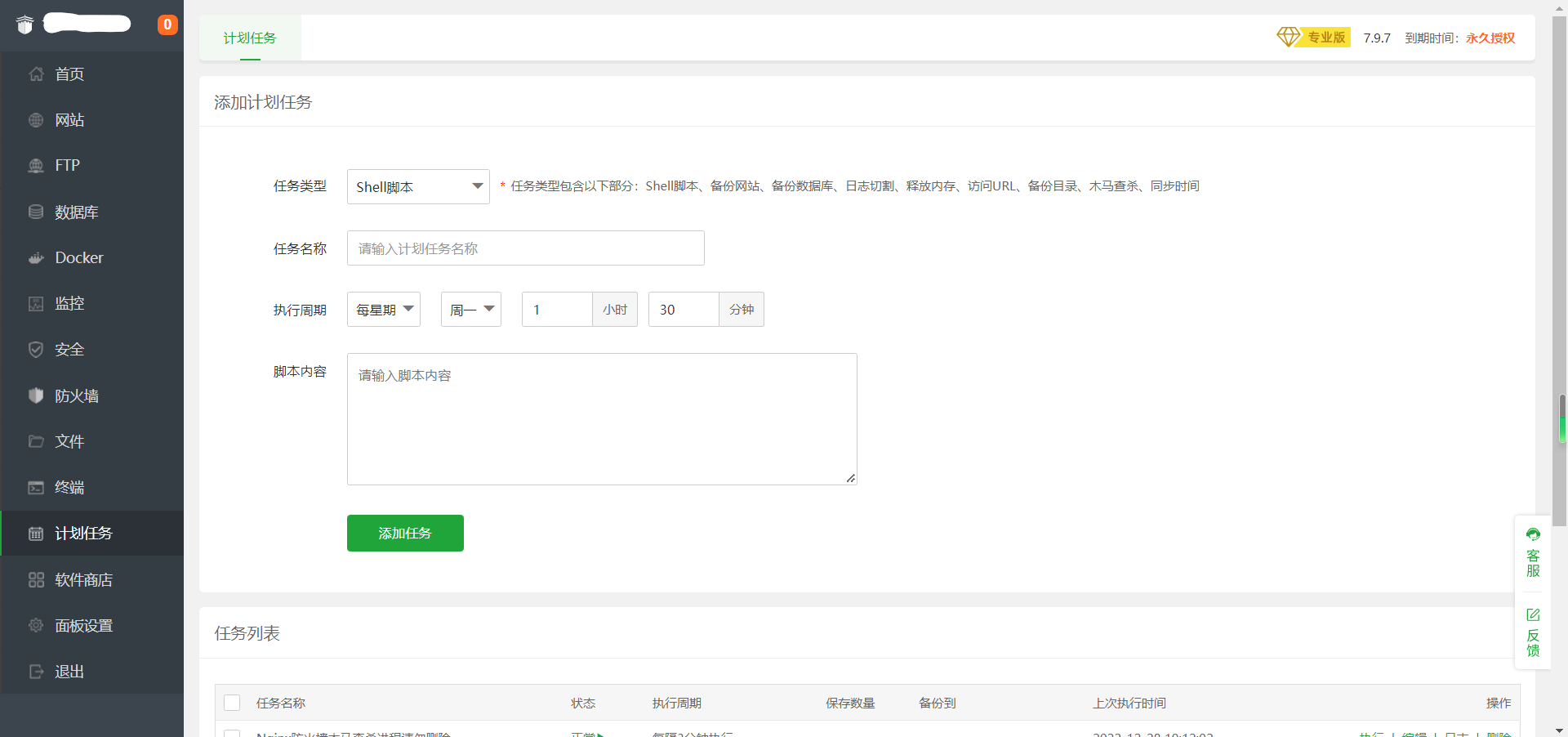 打开宝塔面板,登录后选择左侧菜单中“计划任务”,可看到如图页面