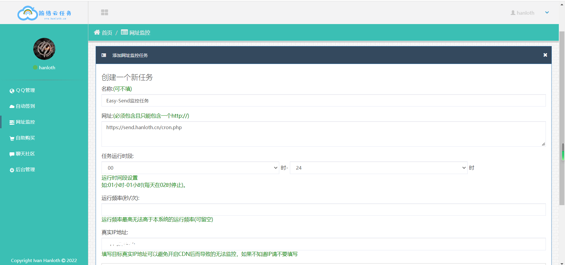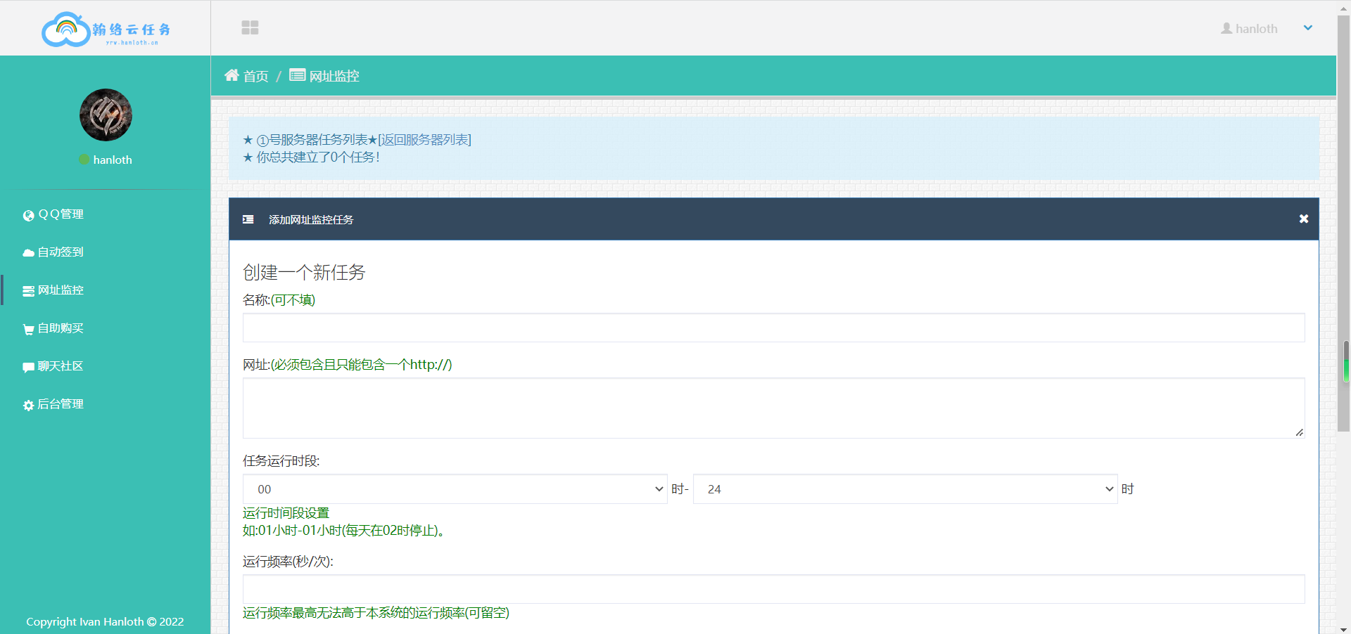 翰络云任务是由作者运行的一个免费的云任务执行平台,网址https://yrw.hanloth.cn/ 或https://yrw.o5g.top/